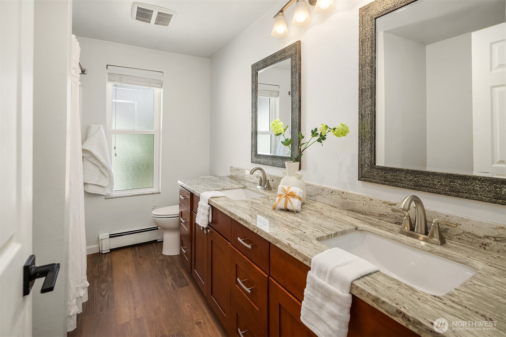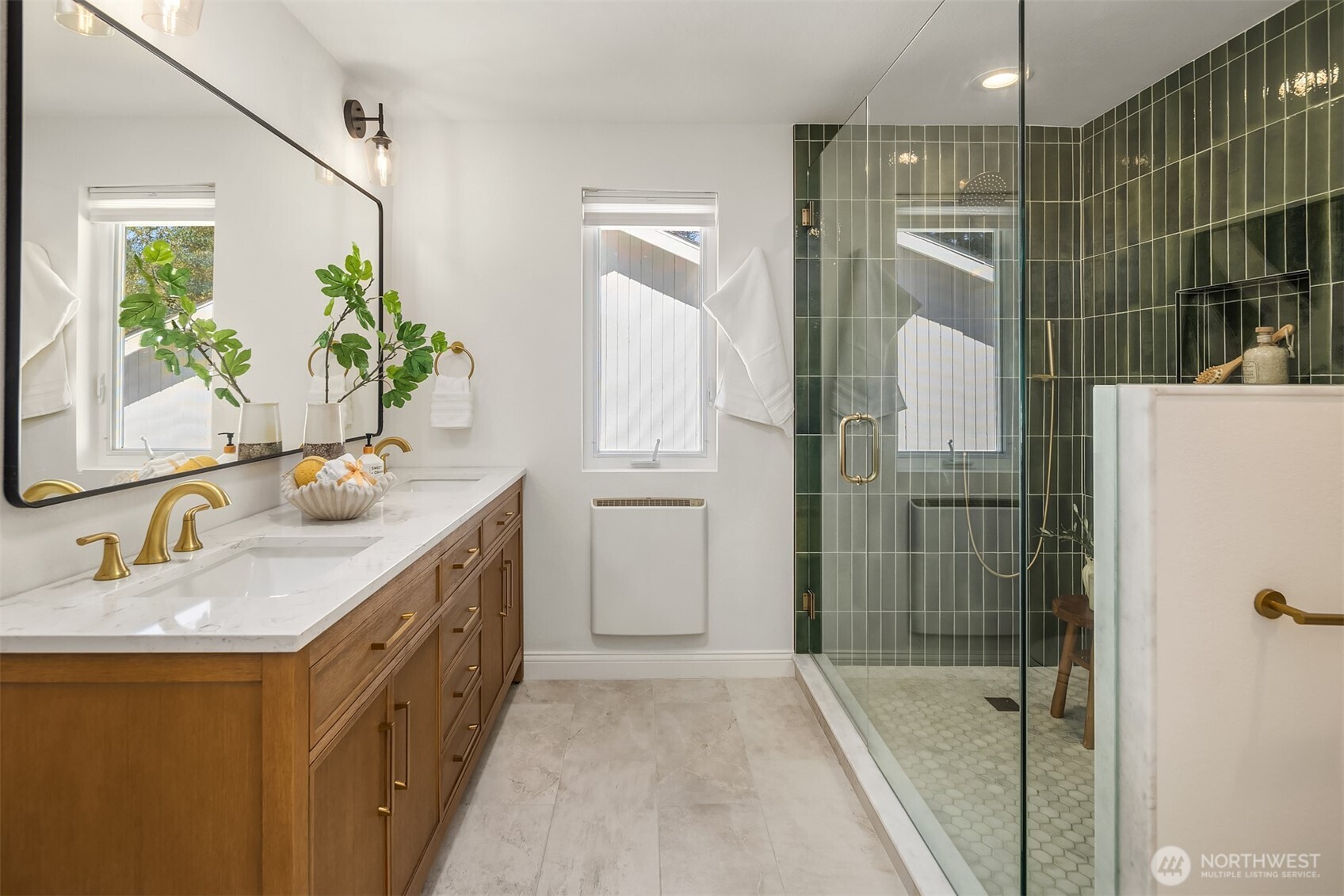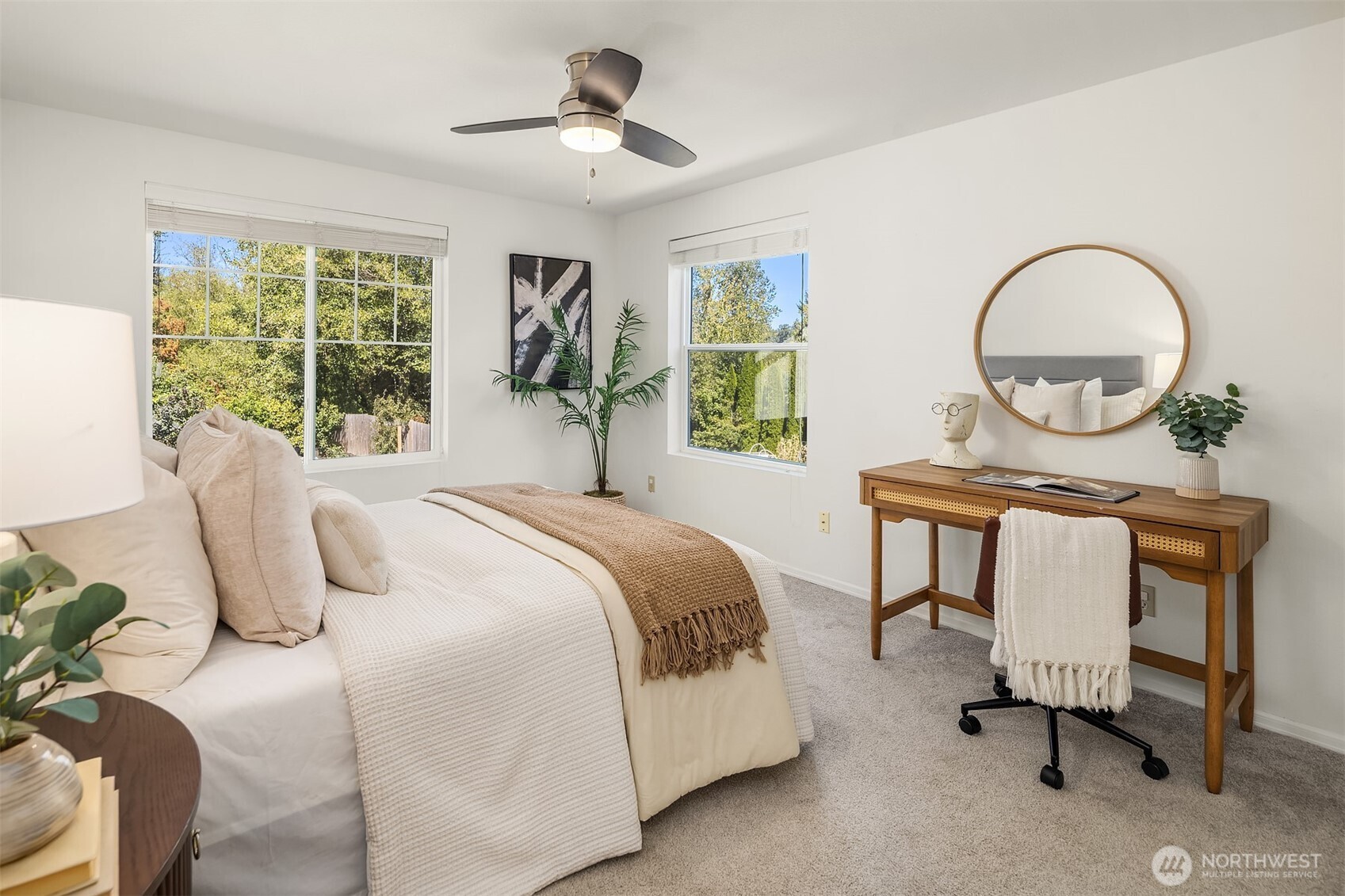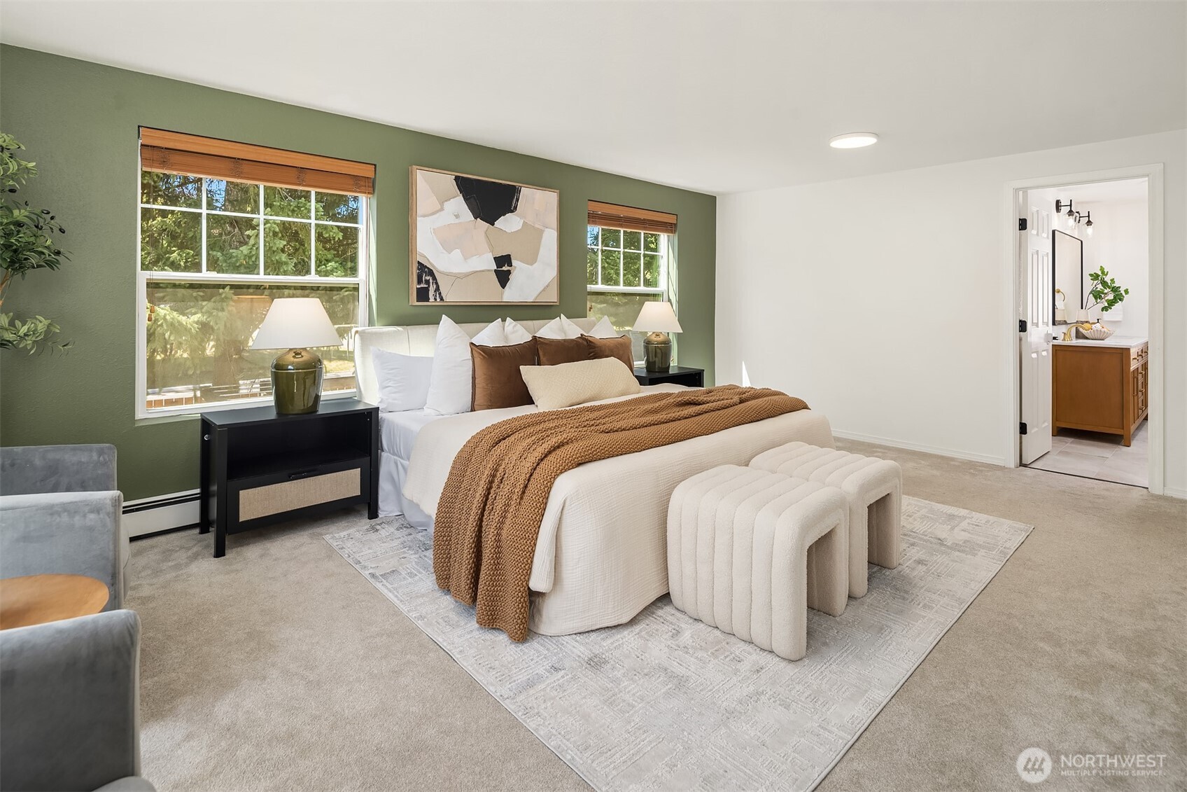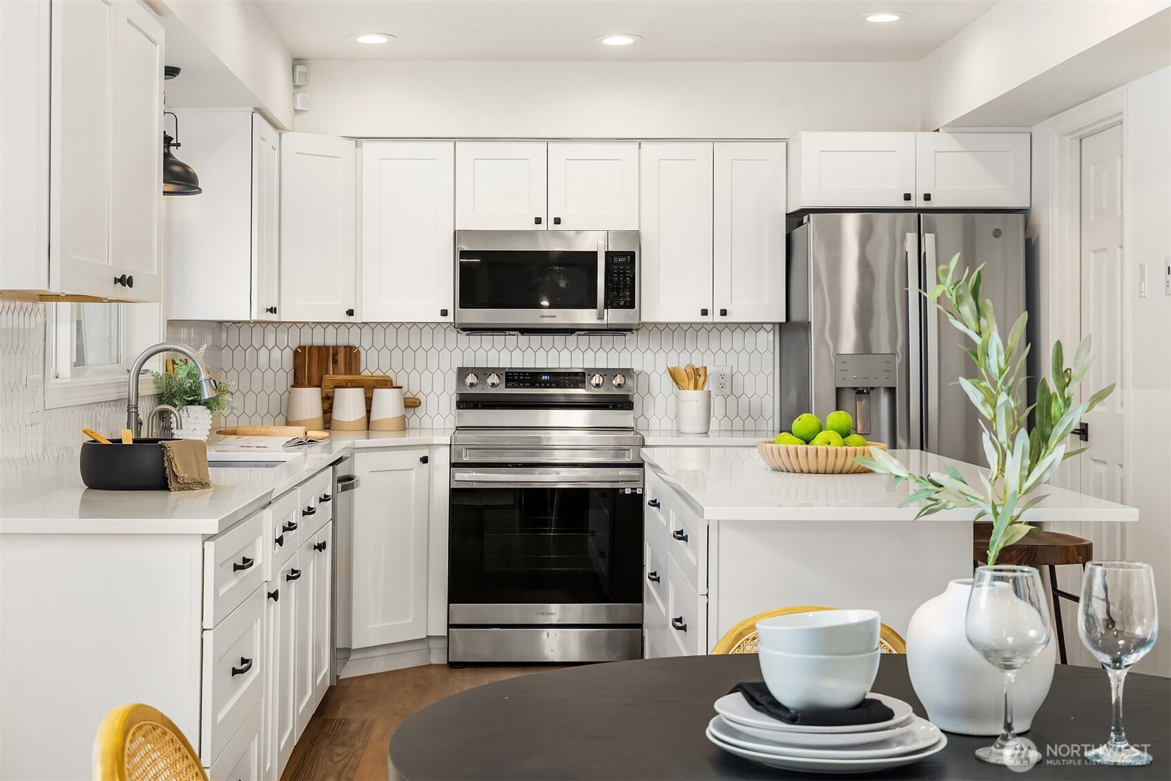 Intimately nestled on a tranquil cul-de-sac and just moments from the lush Soos Creek Trail, this Kent stunner spans across 3,020sqft of fully renovated living space and sited on a generous 1/4-acre lot. Offering 5 bedrooms, 3 1/2 baths--including a luxe guest suite above the garage (generates $2k a month in rental income). Professionally reimagined, show-stopper kitchen flaunts, designer picket-tile backsplash, and full suite of stainless appliances. Outside, the ambiance continues--fruit tree-dotted landscaping, greenhouse, expansive gated parking for RVs or toys, workshop with power, and total privacy among mature growth. Prime location with seamless access to I-5, 405, 167, shopping, major employers and highly rated schools.