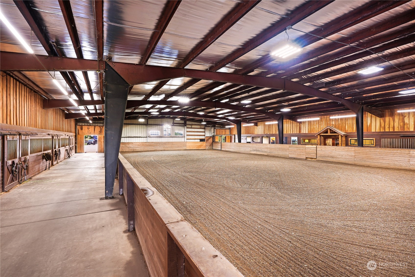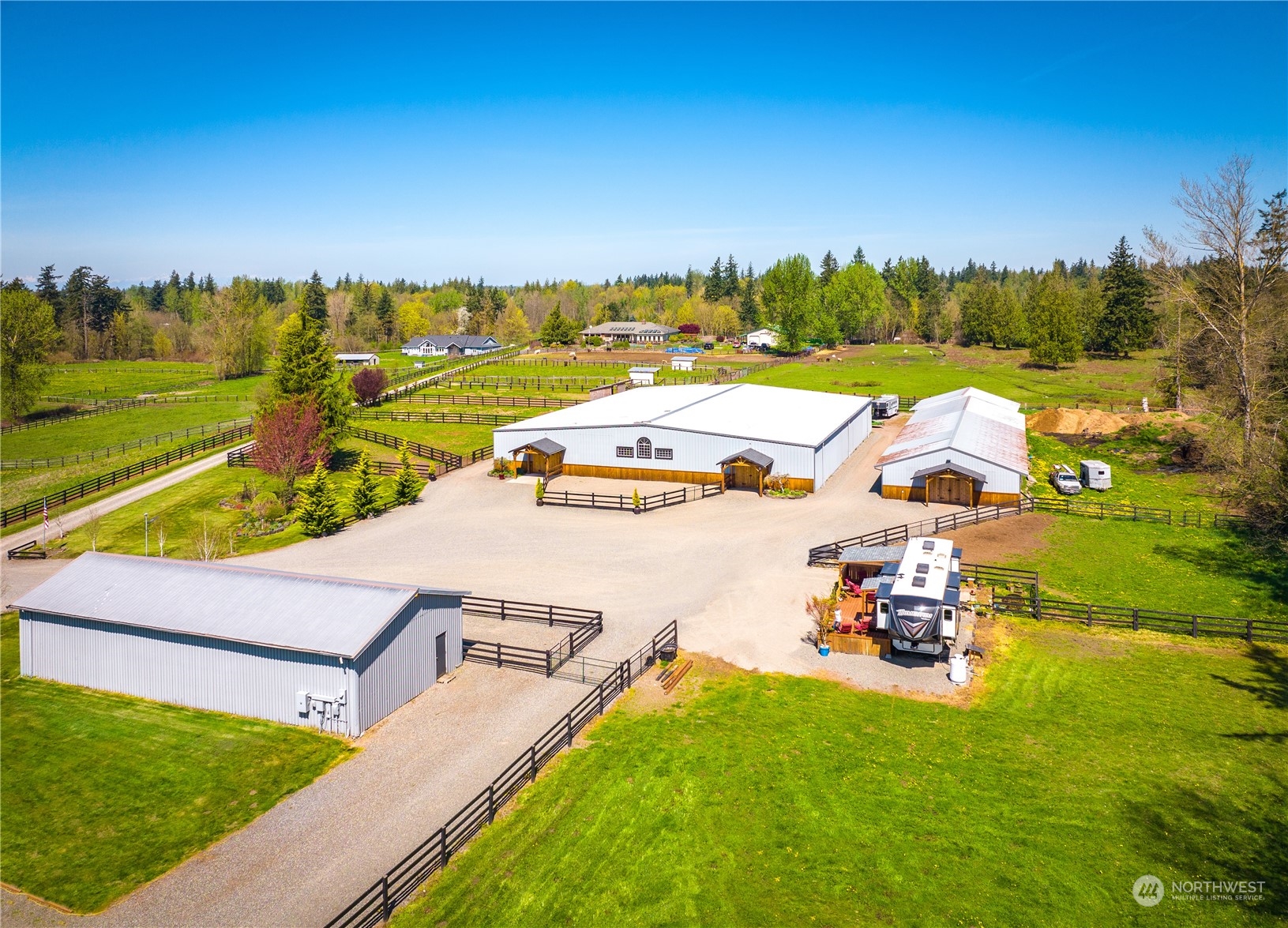 Wonderful horse property on shy 20 acres! One of a kind gated, fenced and cross fenced property with multiple pastures and Mount Rainier views. Impressive 108X125 Indoor Arena Building with 15 stalls and office/viewing room, tack room, wash rack, ready room and 1/2 bath with laundry. Boarder Barn is 36X120 with 36X40 Covered turn-out, 16 stalls, 2 feed rooms, ready room and storage room. Additional 12X30 barn with 2 stalls. Shop is 24X72. Great land has been thoughtfully fenced with 11 pastures. 2 homes (1 stick built and 1 Manufactured). Cute craftsman house has been updated and has views of its own.