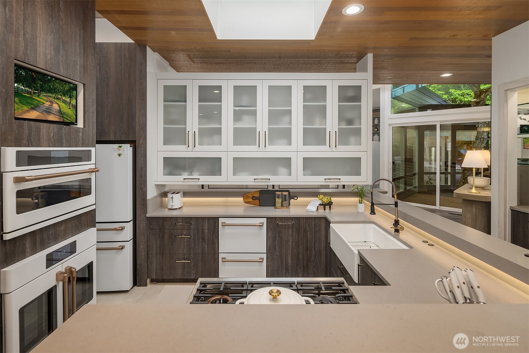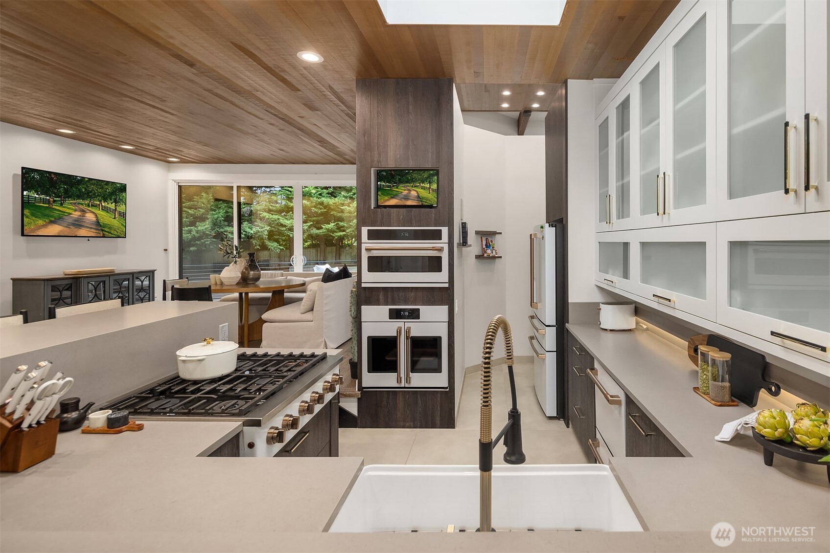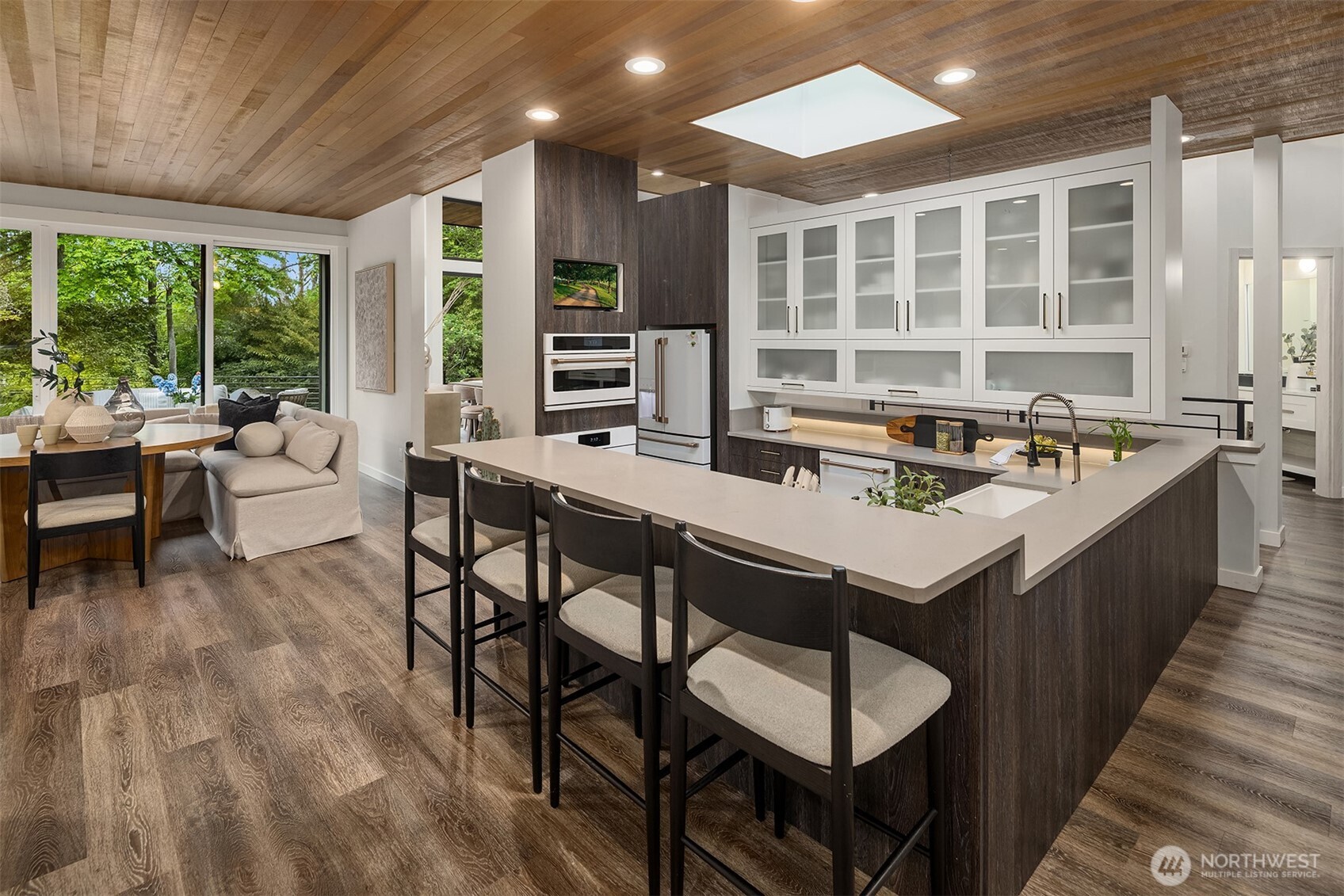 Tucked behind a gated entry on nearly 2 private acres, this 6,000 sq ft architectural gem has been completely reimagined with a top-to-bottom renovation. Surrounded by lush mature landscaping, tranquil forest, and a serene private pond, this one-of-a-kind retreat offers unmatched privacy just minutes from city conveniences.Inside, discover soaring ceilings, walls of glass, and curated designer finishes throughout. The expansive floor plan offers multiple living areas, a stunning open-concept kitchen, and seamless indoor-outdoor flow--perfect for entertaining or quiet reflection. Outside, multiple patios, a pondside lounge, and curated garden paths provide resort-like relaxation in your own backyard.
