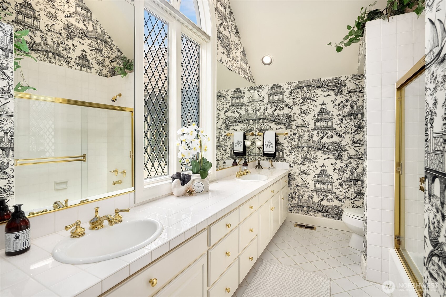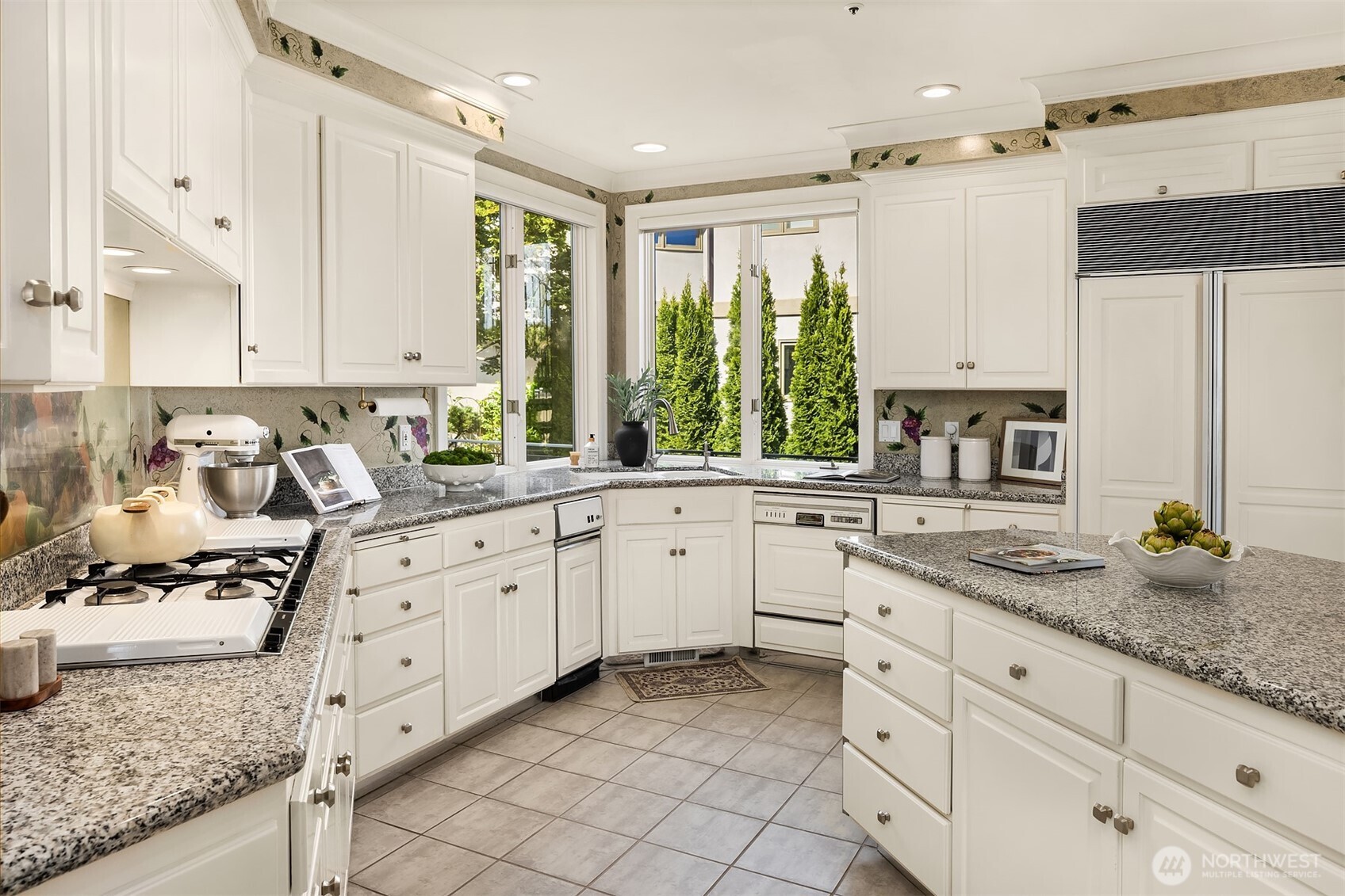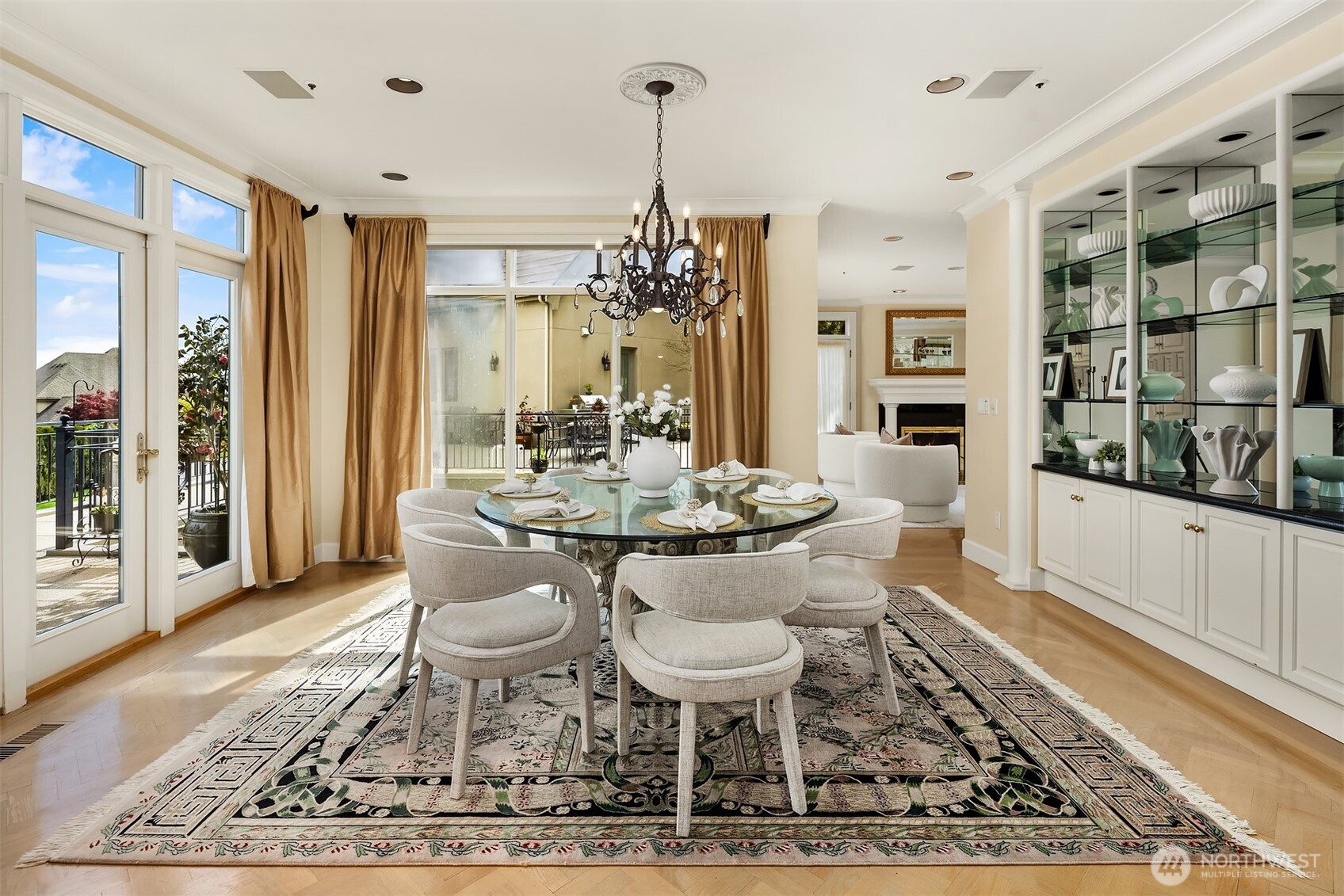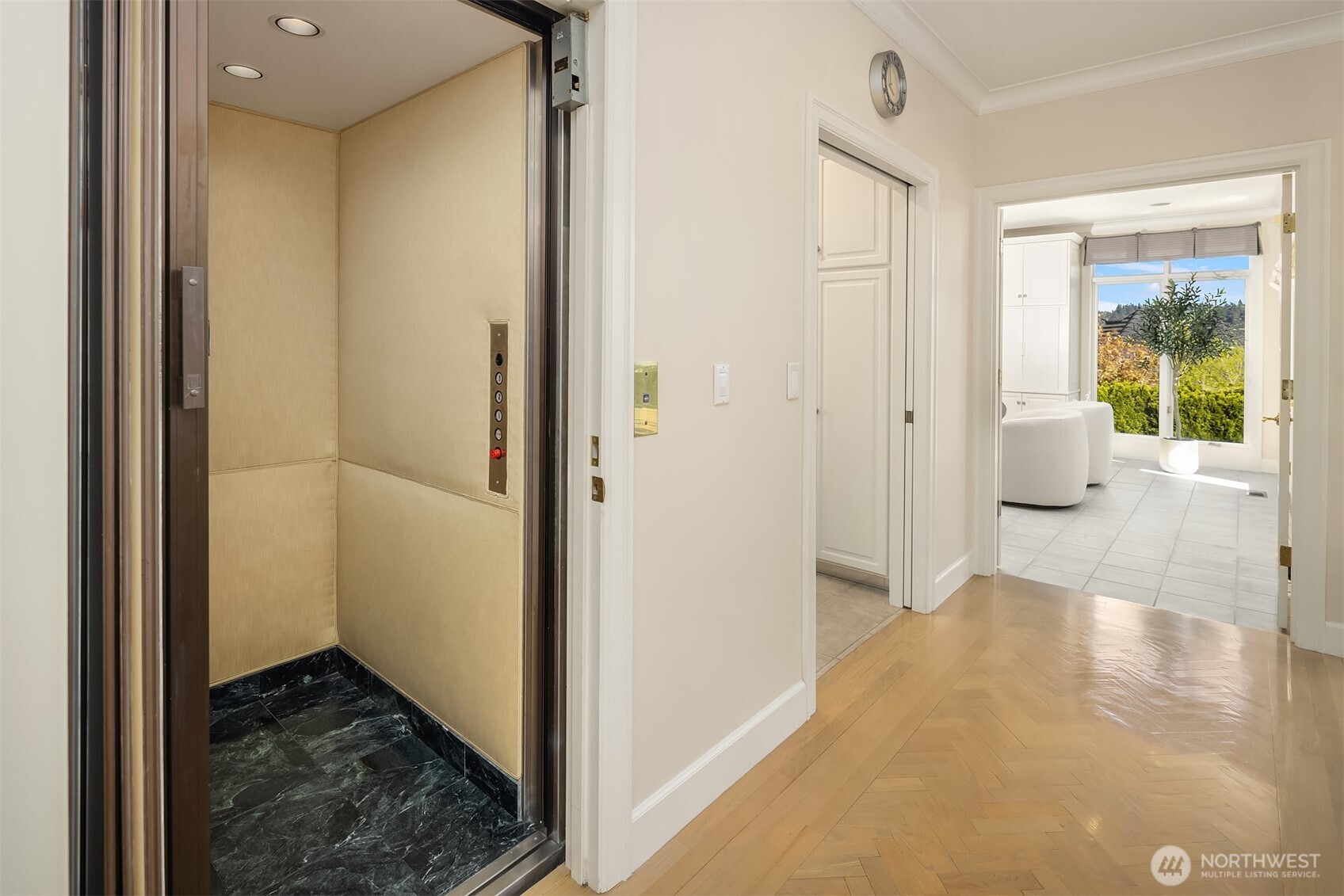 Tucked behind the private gates of Woodland Cove in Juanita, this rare Kirkland offering delivers an unparalleled blend of luxury, privacy, and waterfront lifestyle. Set on a combined double lot, the property provides exceptional scale and flexibility, featuring a beautifully appointed main residence alongside a ADU, ideal for guests or multigenerational living. Designed for both comfort and convenience, the main home includes an elevator and showcases stunning views of Lake Washington and Mount Rainier from multiple vantage points. Expansive living spaces are complemented by seamless indoor-outdoor flow, while the unique drive-through lot offers dual access points for effortless entry and exit. A true standout for collectors and enthusiasts, the property boasts garage space for up to seven vehicles. As part of the exclusive Woodland Cove community, residents enjoy access to private waterfront amenities, including shared shoreline and boat moorage on Lake Washington, bringing the best of Pacific Northwest living right to your doorstep. Private, versatile, and exceptionally rare, this is Kirkland living at its finest.
