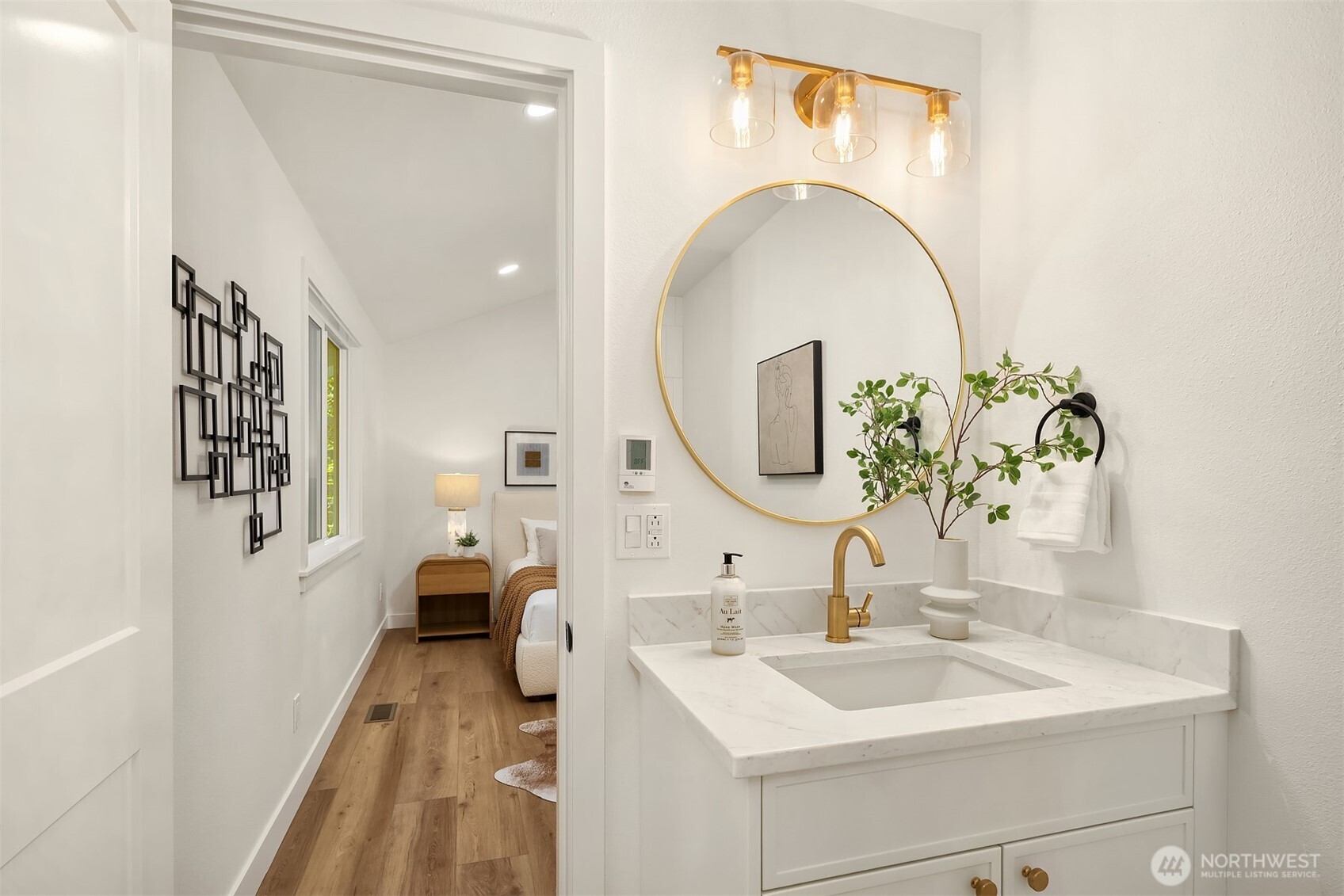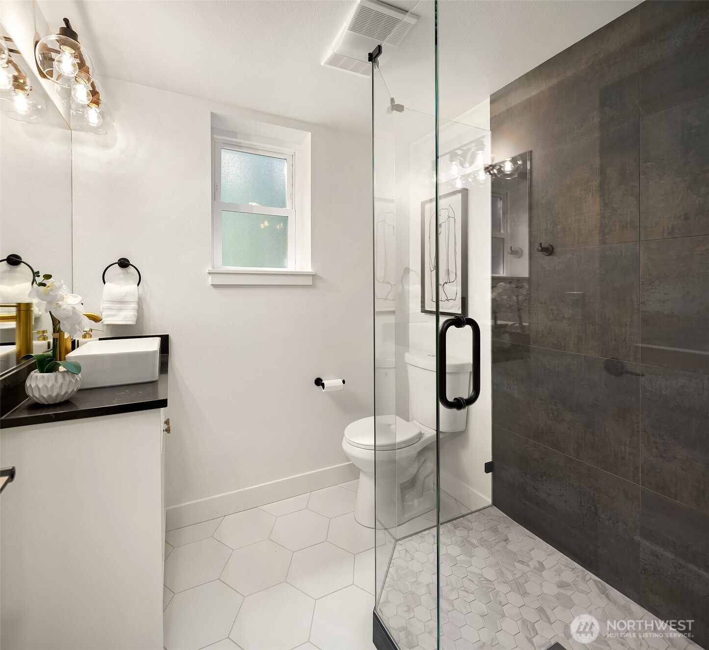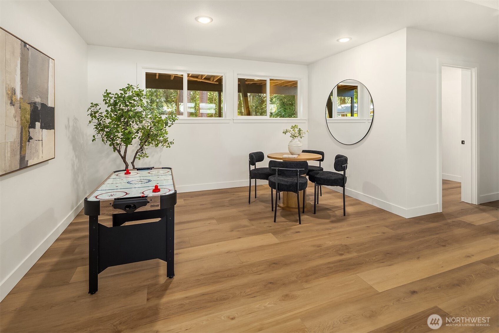 Beautifully reimagined Edmonds home just minutes from downtown and the waterfront. Thoughtfully updated throughout, this light-filled residence blends modern design with timeless comfort. Vaulted ceilings and expansive windows create an airy, open feel, while wide-plank flooring and designer finishes elevate every space. The stunning kitchen features custom cabinetry, sleek surfaces, premium appliances, and an oversized island, seamlessly connecting to the main living area anchored by a striking fireplace. Spacious bedrooms and spa-inspired baths offer a refined retreat, highlighted by clean lines and high-end fixtures. Set on a lush, landscaped lot surrounded by mature trees, the outdoor spaces provide both privacy and tranquility. Ideal location near downtown Edmonds shops, restaurants, parks, and waterfront amenities, with easy access to commuting routes. Turnkey, stylish, and perfectly positioned, this is Edmonds living at its best.